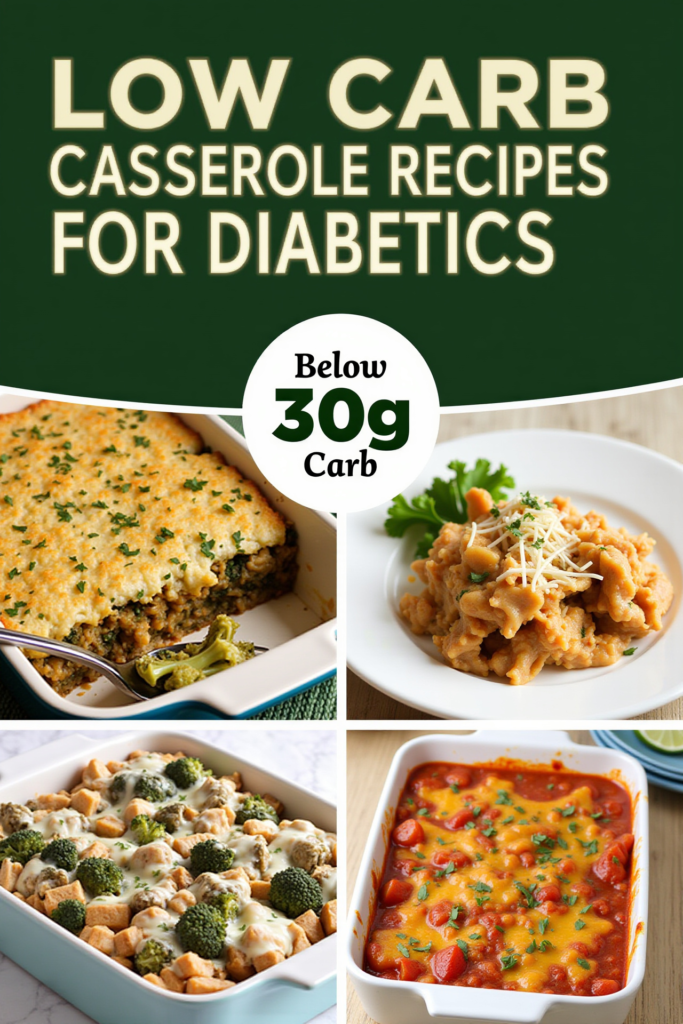 Each recipe below yields 4 servings, and with portions typically ranging from 250–350 calories and 5–12g net carbs per serving, these casserole ideas are suitable for balanced diabetic meal plans. Protein and fiber content help keep you satisfied and support healthy blood sugar management.