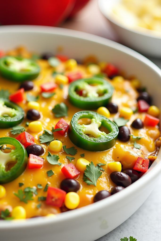 - Veggie-Packed Enchilada Casserole: Layers of corn tortillas, black beans, bell peppers, spinach, and a tangy enchilada sauce for southwest-inspired comfort.